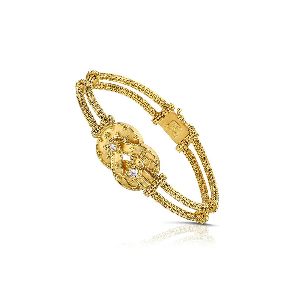 Damaskos Byzantine Medallion Braided Bracelet with Diamonds – 18k Gold