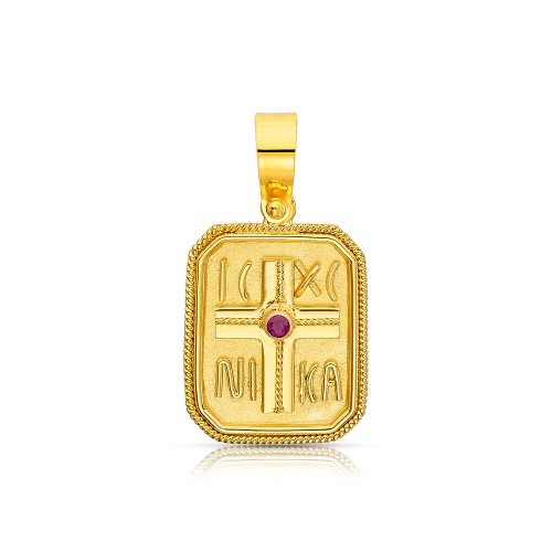 Elevate your elegance with this exquisite piece of Byzantine jewellery, masterfully crafted from 18K gold and adorned with radiant rubies. Each pendant embodies the rich heritage of Greek jewellery, offering a timeless symbol of exclusivity and refined artistry.