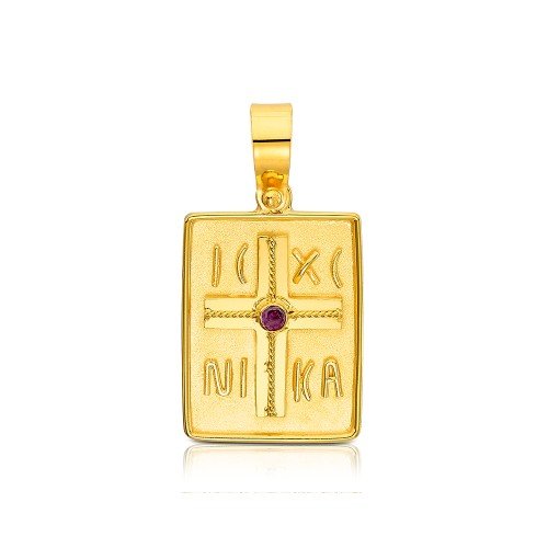 Immerse yourself in the elegance of Greek Jewellery with this exquisite double-sided cross pendant, where 18K gold and radiant rubies converge in a timeless design. Crafted with meticulous attention to detail, this piece embodies the rich heritage and artistry of Byzantine Jewellery, making it a truly exclusive treasure.