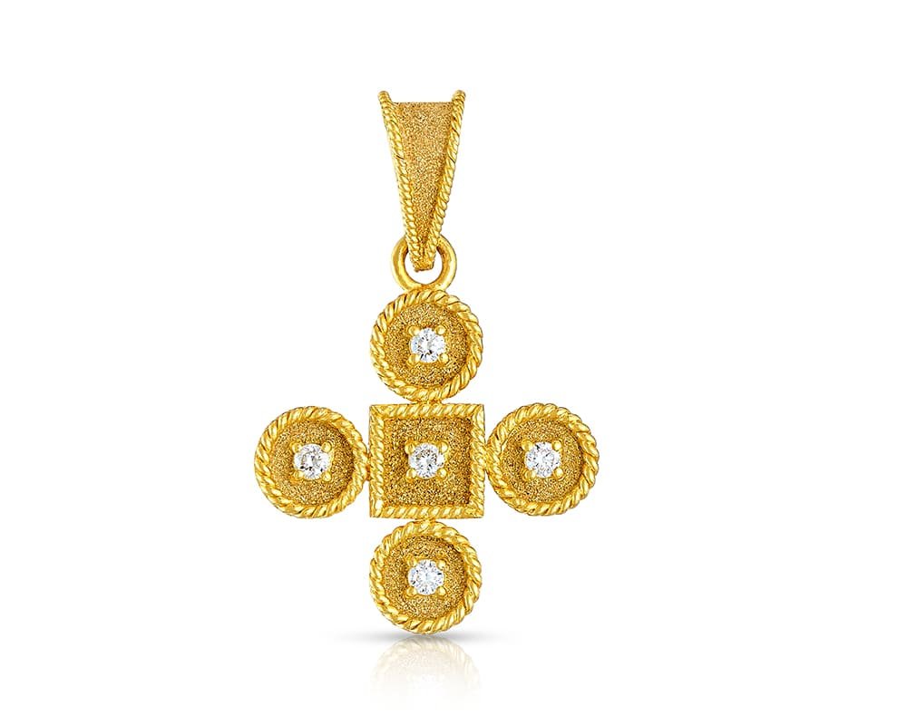 Damaskos Byzantine 18K Gold Cross with diamonds (0,10 ct)