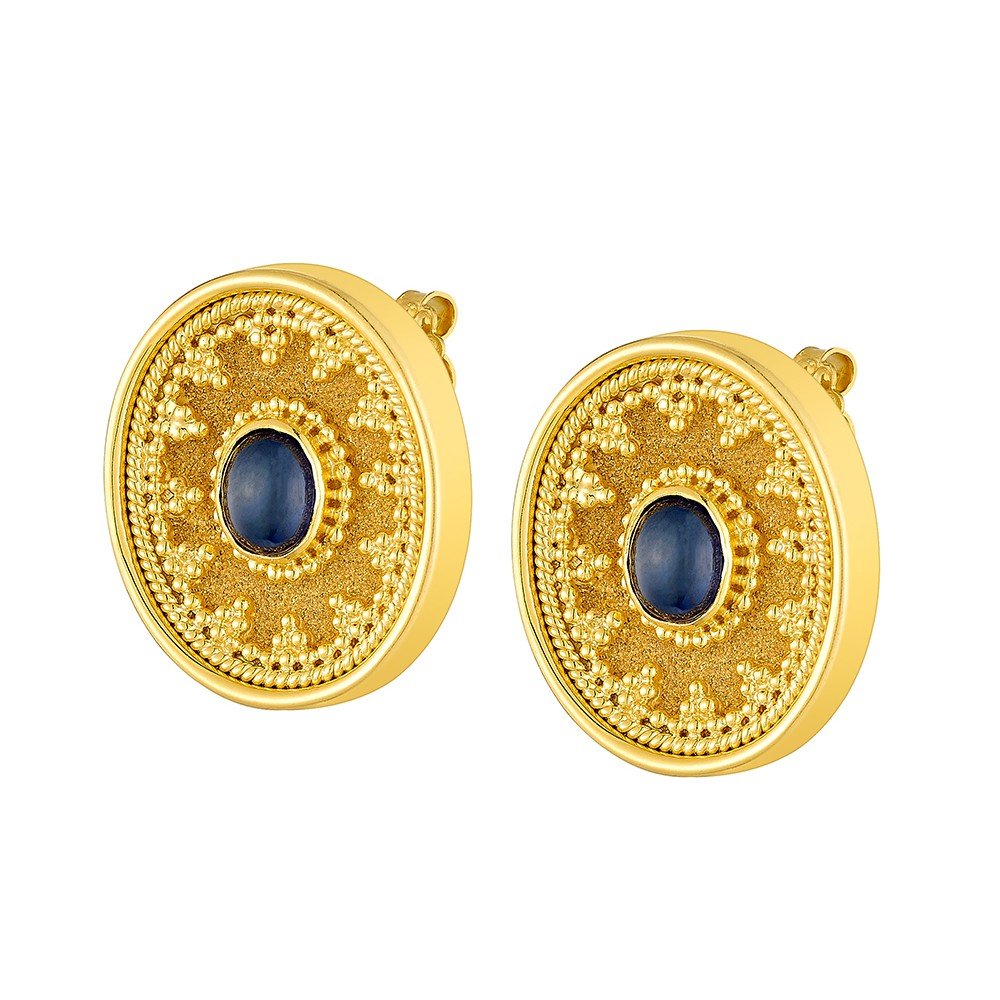 Damaskos Byzantine Oval Stud Earrings with Blue Gemstones – 18k Gold